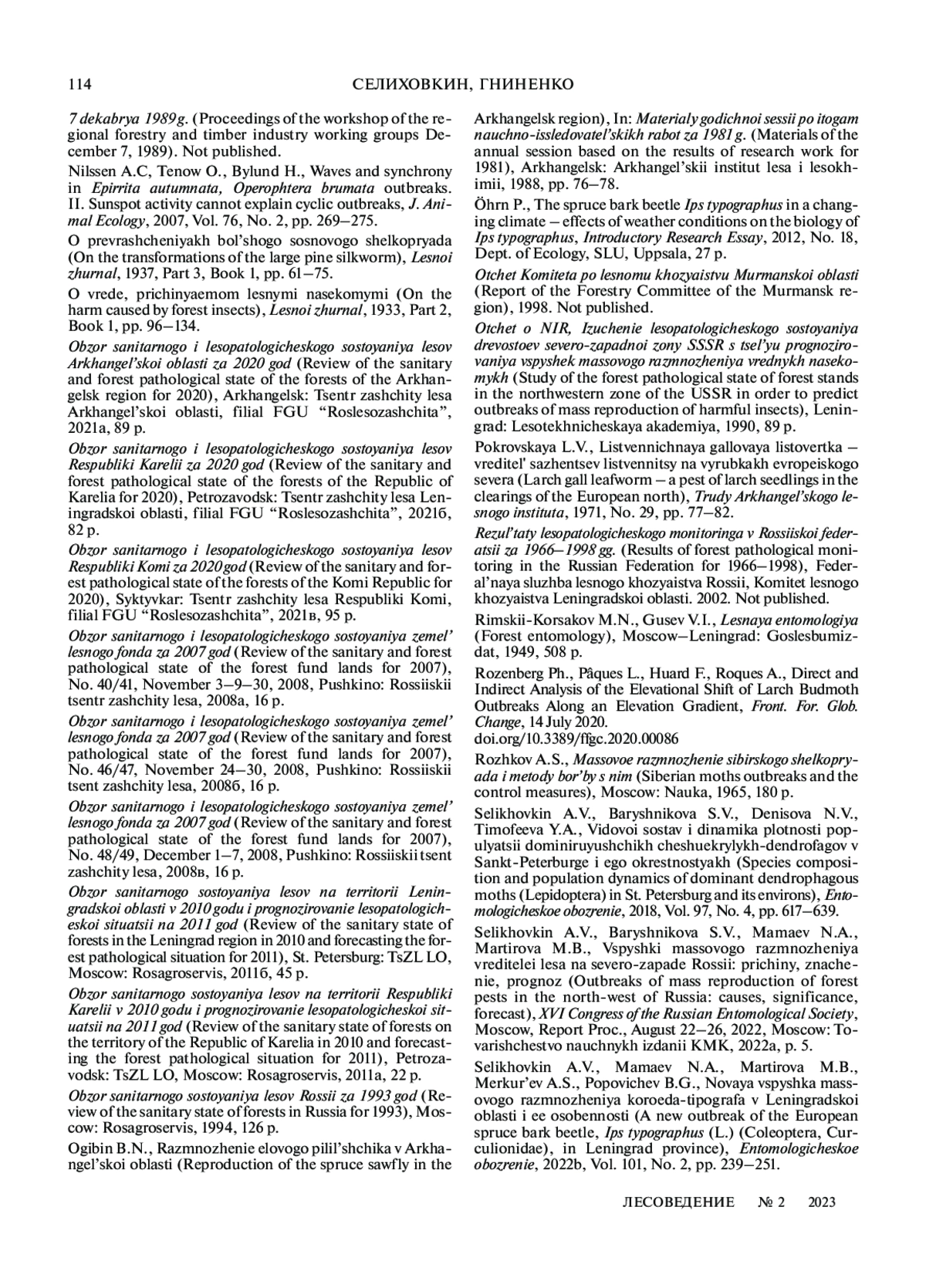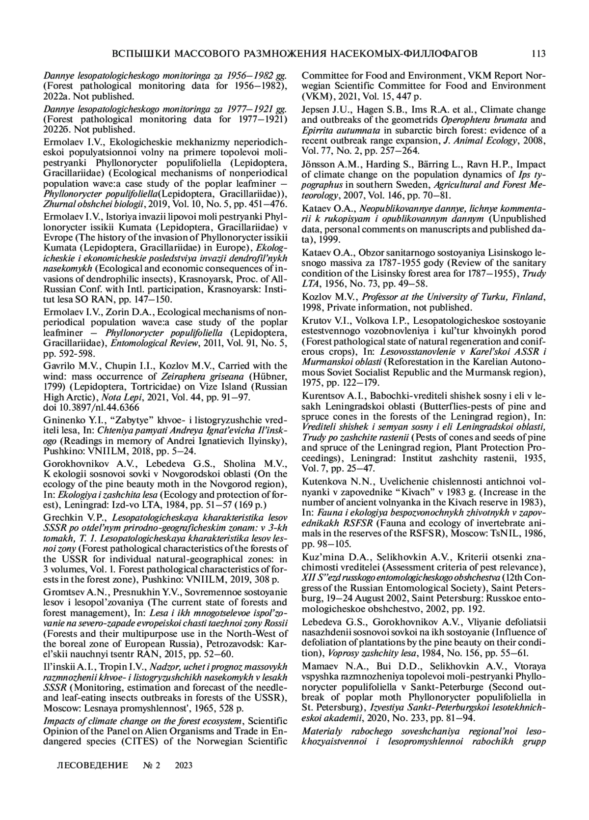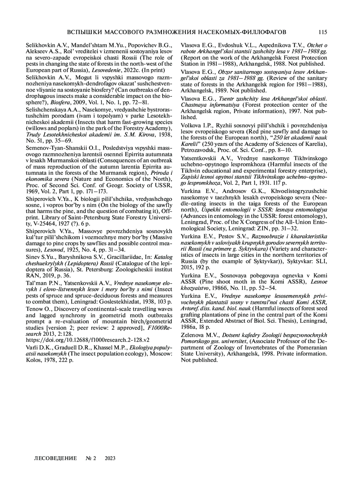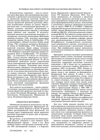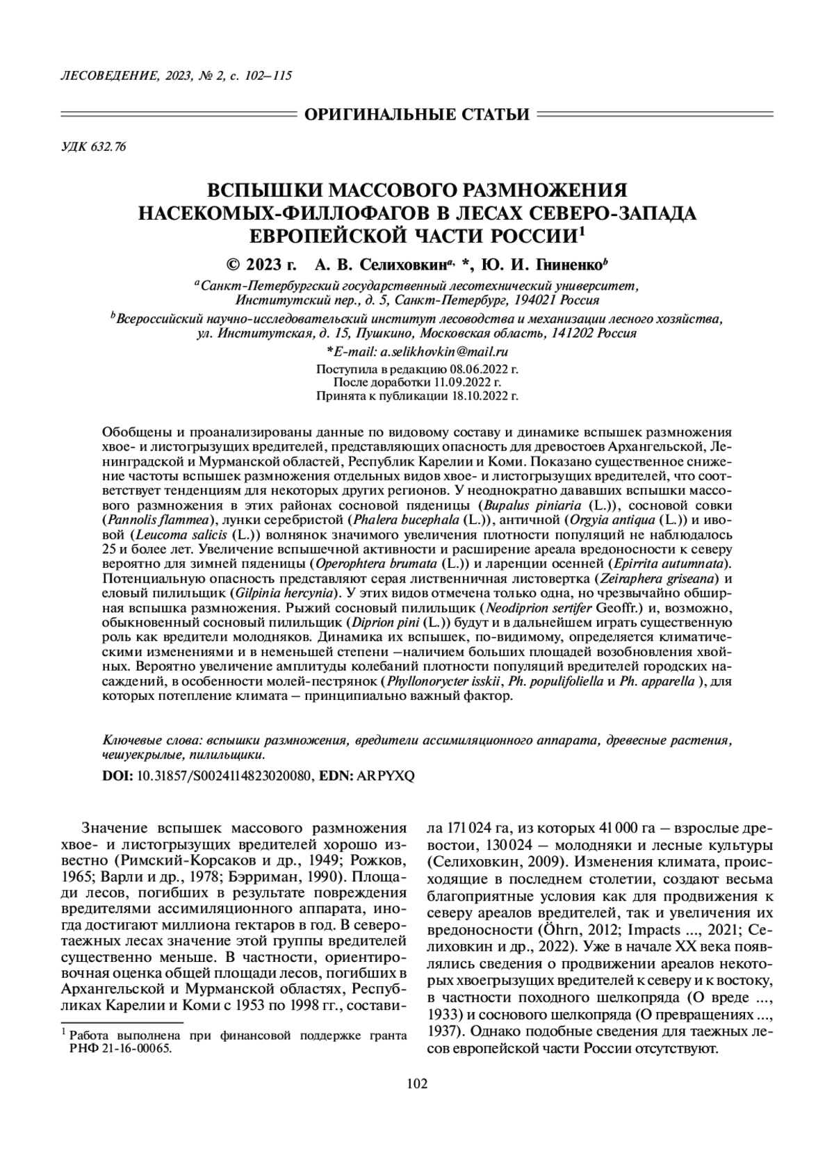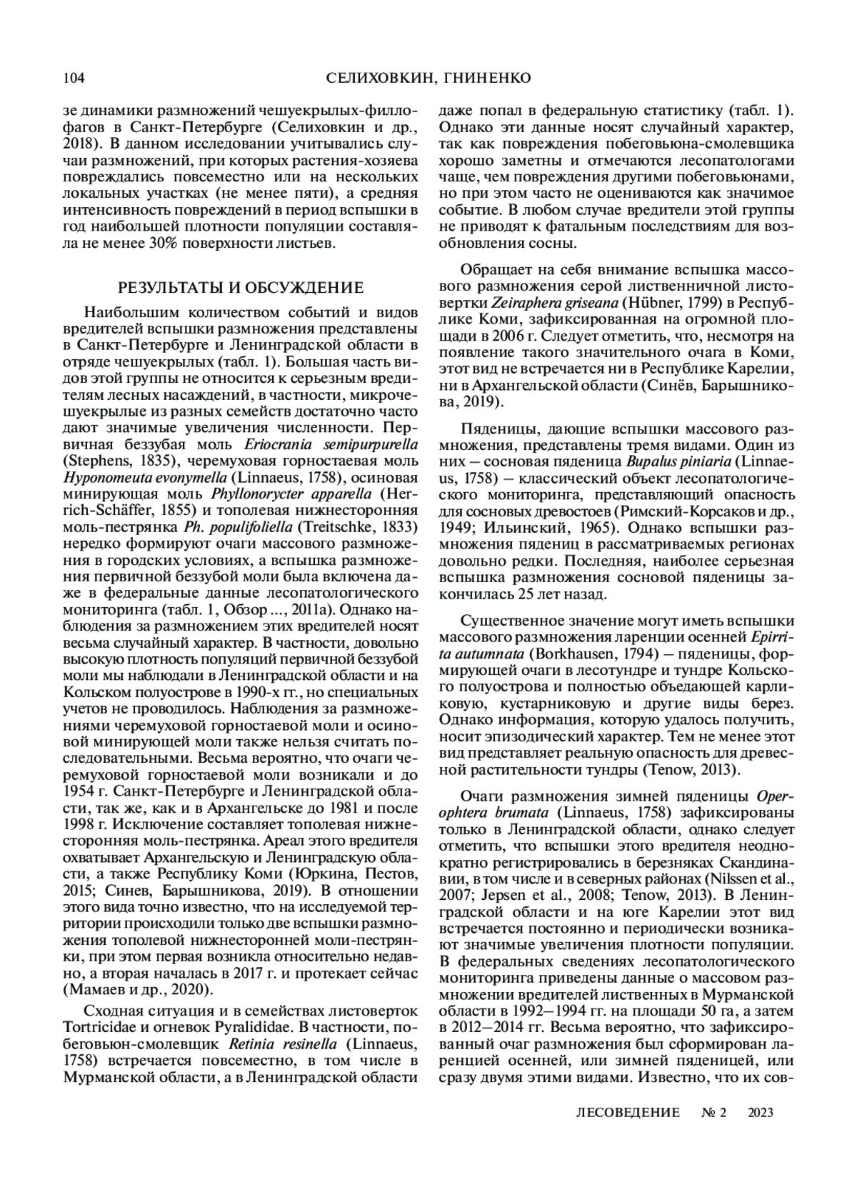 Статья: ВСПЫШКИ МАССОВОГО РАЗМНОЖЕНИЯ НАСЕКОМЫХ-ФИЛЛОФАГОВ В ЛЕСАХ СЕВЕРО-ЗАПАДА ЕВРОПЕЙСКОЙ ЧАСТИ РОССИИ (2023)