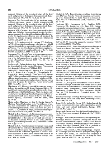 18. Москалюк Т.А. Трансформация травяного яруса за 20 лет восстановительной сукцессии в широколиственных лесах с лиановой растительностью на юге Приморского края // Комаровские чтения, 2021. Вып. LXIX. С. 26–78.