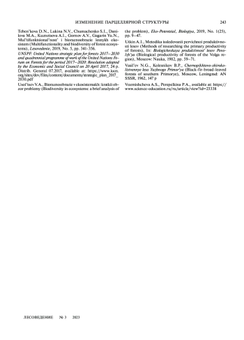 36. Gao T., Hedblom M., Emilsson T., Nielsen A.B. The role of forest stand structure as biodiversity indicator // Forest Ecology and Management. 2014. V. 330. P. 82–93.
