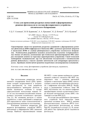 ФИЗИЧЕСКАЯ АППАРАТУРА И ЕЁ ЭЛЕМЕНТЫ Стенд для проведения ресурсных испытаний в форсированных режимах фотомодуля из состава фотоприемного устройства космического базирования