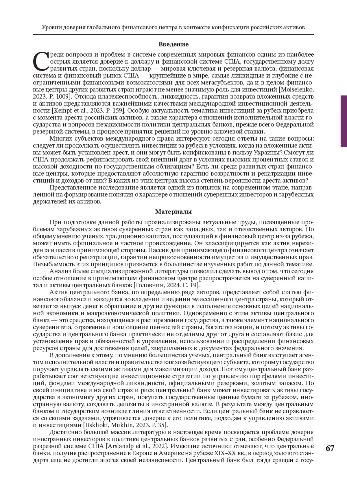 31. Moiseienko A. Legal: The Freezing of the Russian Central Bank’s Assets. The European Journal of International Law. 2023. Vol. 34. No. 4. P. 1007-1019. DOI: 10.1093/ejil/chad050