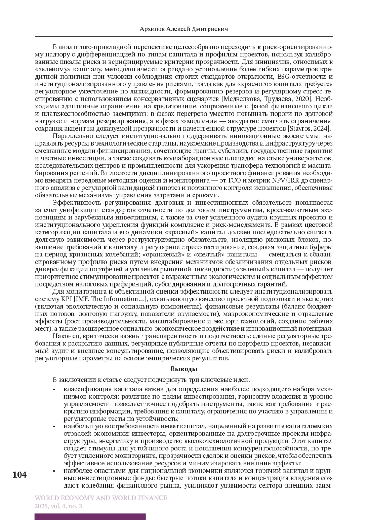 2. Архипов А.Д. Инновационные механизмы контроля за международным движением капитала // Мировая экономика и мировые финансы. 2025. Т. 4. № 1. С. 70-77.