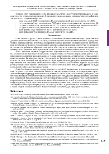 Статья: МОДЕЛИРОВАНИЕ ДИНАМИЧЕСКОЙ ВЗАИМОСВЯЗИ МЕЖДУ НАКОПЛЕНИЕМ СУВЕРЕННОГО ДОЛГА И ДИНАМИКОЙ ПЛАТЕЖНОГО БАЛАНСА В АФРИКАНСКИХ СТРАНАХ НА ПРИМЕРЕ ЗАМБИИ (2025)