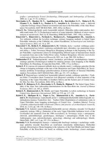 22. Rybin E. P., Khatsenovich A. M. Middle and Upper Paleolithic Levallois technology in Eastern Central Asia // Quaternary International. 2020. Vol. 535. P. 117-138.
