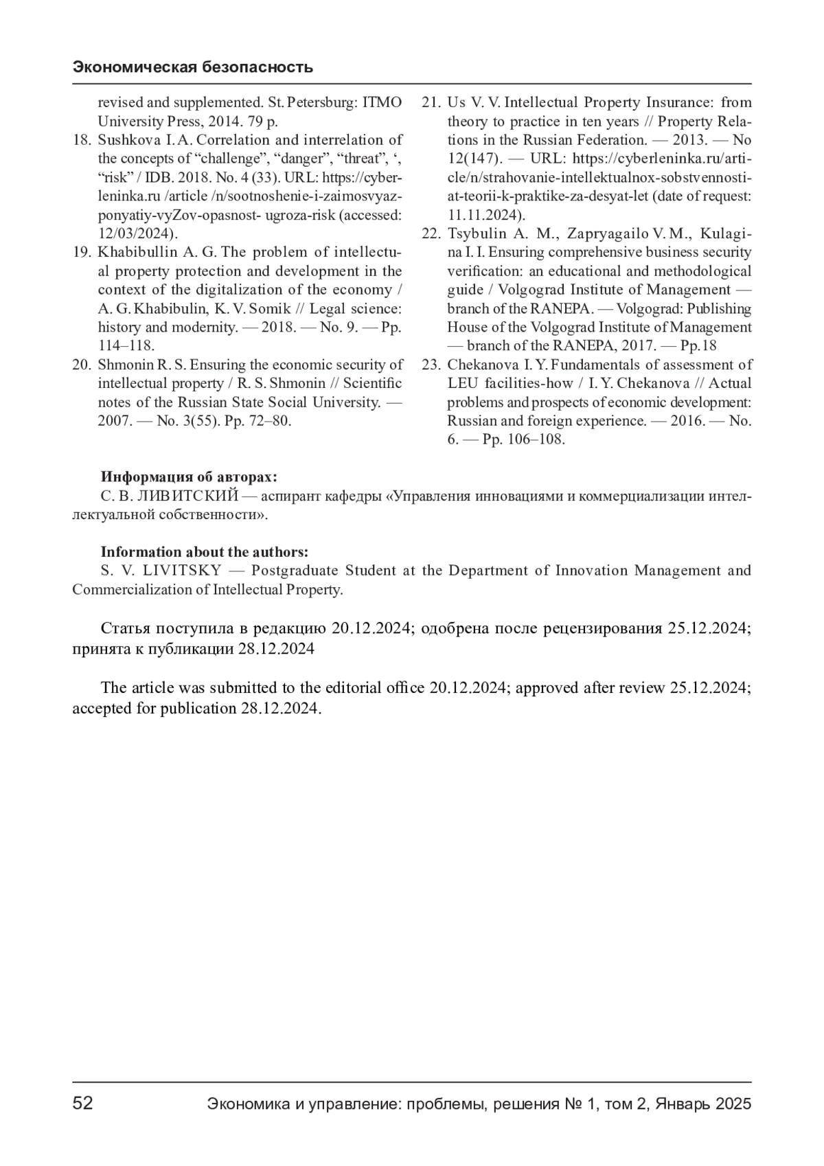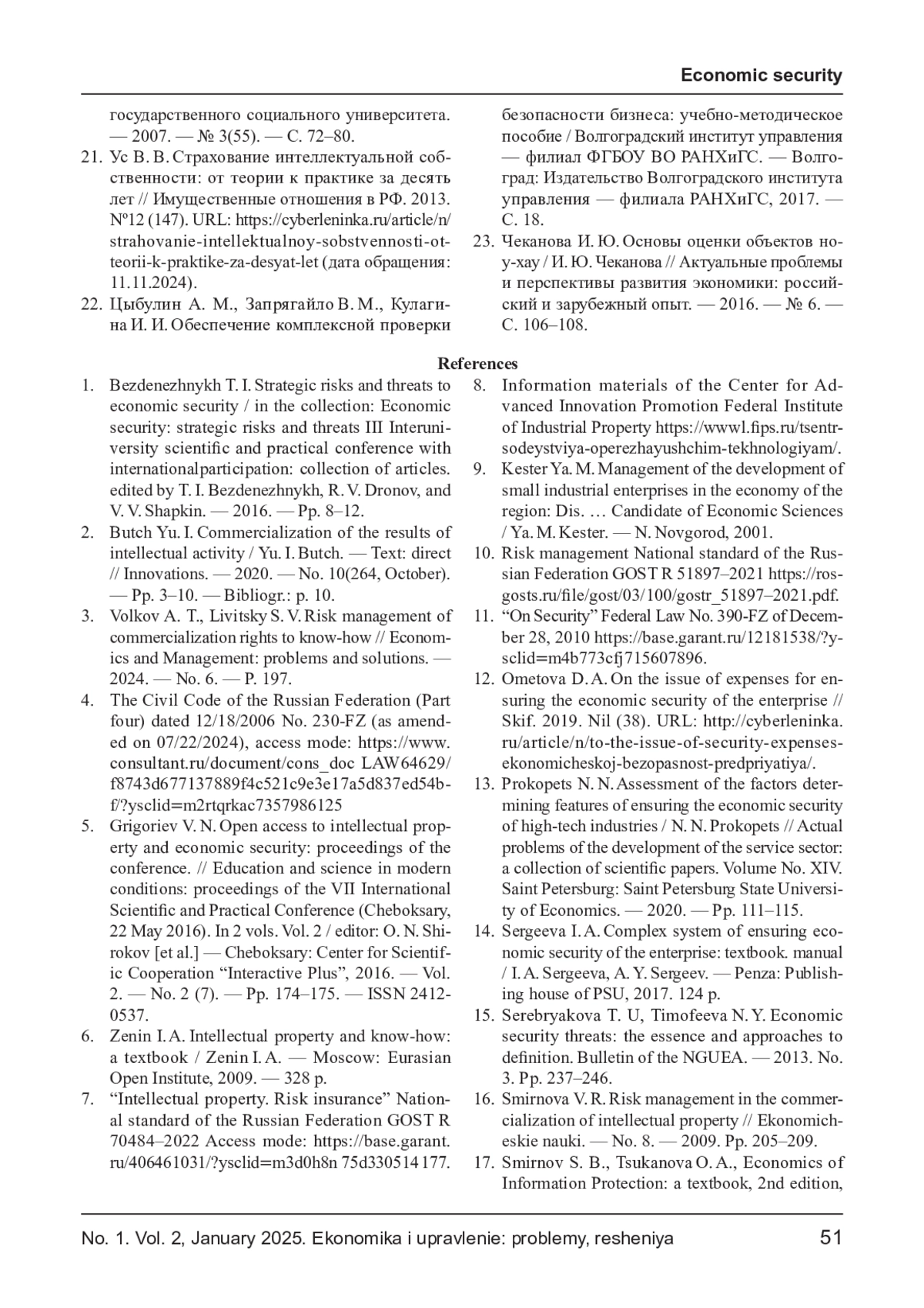 ЛИВИТСКИЙ С. В. ОБЕСПЕЧЕНИЕ ЭКОНОМИЧЕСКОЙ БЕЗОПАСНОСТИ, КАК НЕОБХОДИМЫЙ ЭЛЕМЕНТ КОММЕРЦИАЛИЗАЦИИ ПРАВ НА НОУ-ХАУ // ЭКОНОМИКА И УПРАВЛЕНИЕ: ПРОБЛЕМЫ, РЕШЕНИЯ. 2025. ТОМ 2 № 1