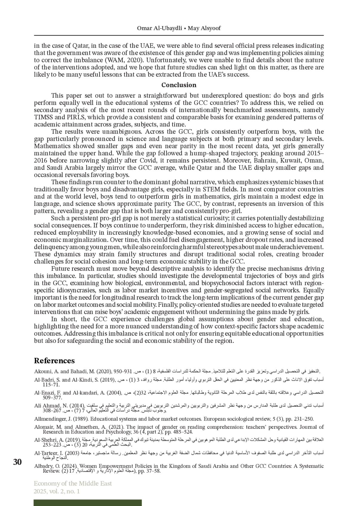 13. Булила Д. и Хентати Л. (2022), Попытка объяснить сокращение гендерного разрыва в успеваемости в арабских странах. Обзор образовательной и социальной политики стран Персидского залива, 3 (1), стр. 91-123.