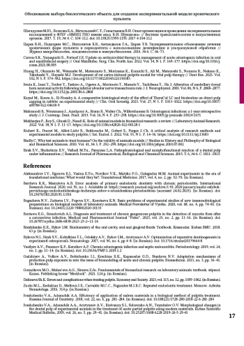 Статья: Обоснование выбора биологического объекта для создания экспериментальной модели хронического пульпита (2025)