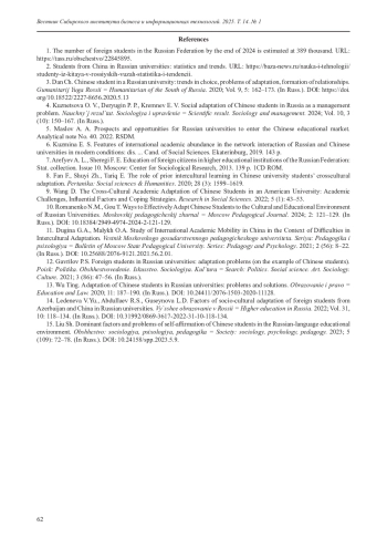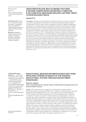 Ключевые фразы: адаптация, китайские студенты, РОССИЙСКОЕ ОБРАЗОВАНИЕ, стратегии рекрутинга, поликультурная среда, российско-китайское взаимодействие