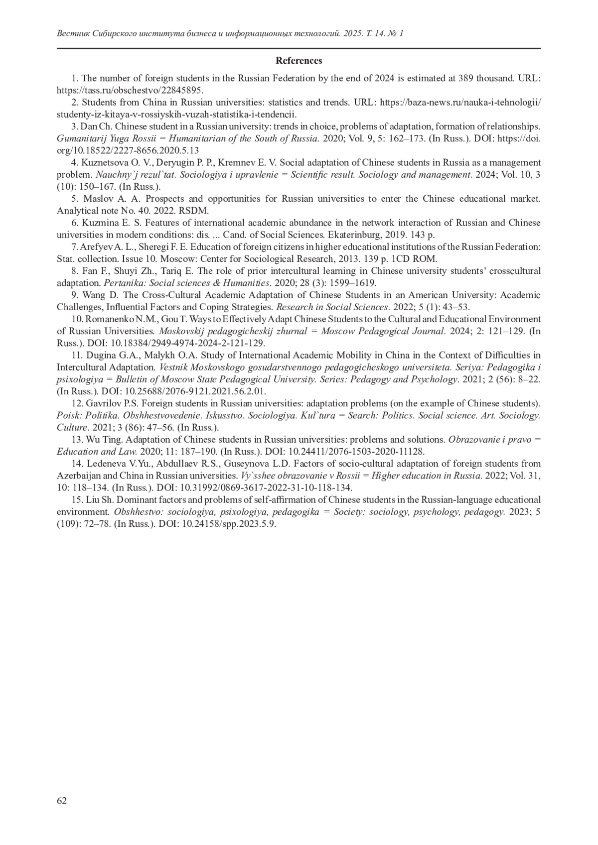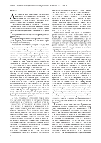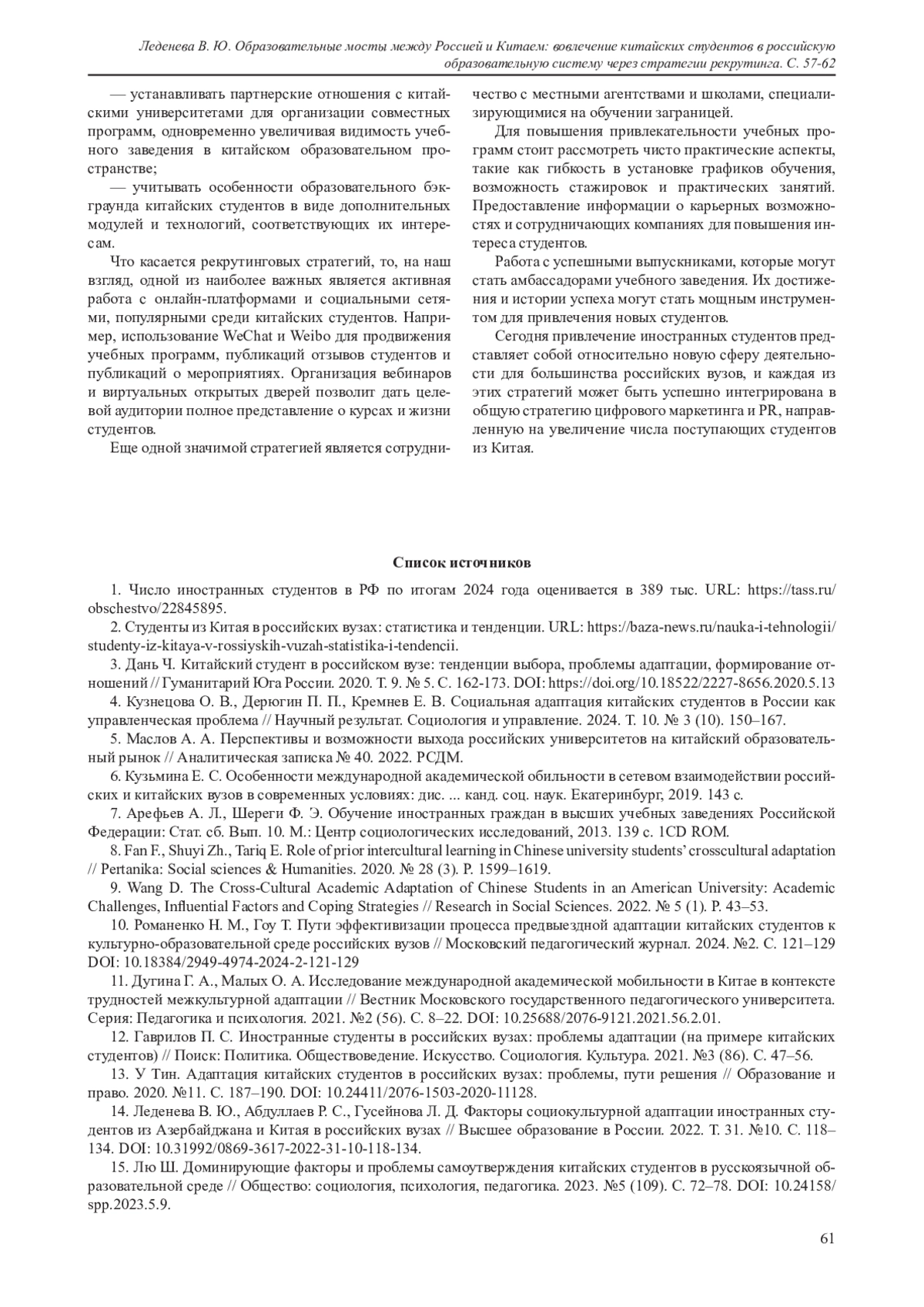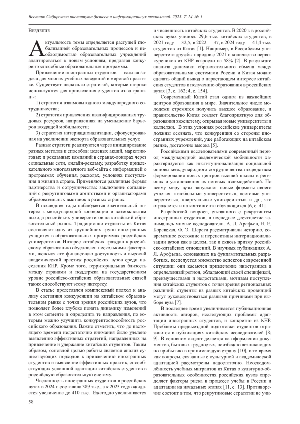 ЛЕДЕНЁВА В. Ю. ОБРАЗОВАТЕЛЬНЫЕ МОСТЫ МЕЖДУ РОССИЕЙ И КИТАЕМ: ВОВЛЕЧЕНИЕ КИТАЙСКИХ СТУДЕНТОВ В РОССИЙСКУЮ ОБРАЗОВАТЕЛЬНУЮ СИСТЕМУ ЧЕРЕЗ СТРАТЕГИИ РЕКРУТИНГА // ВЕСТНИК СИБИРСКОГО ИНСТИТУТА БИЗНЕСА И ИНФОРМАЦИОННЫХ ТЕХНОЛОГИЙ. 2025. ТОМ 14, № 1