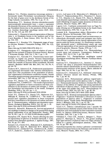 22. Frolov P.V., Shanin V.N., Zubkova E.V., Bykhovets S.S., Grabarnik P.Ya. CAMPUS-S – The model of ground layer vegetation populations in forest ecosystems and their contribution to the dynamics of carbon and nitrogen. I. Problem formulation and description of the model. Ecological Modelling 2020 a. V. 431. P. 1–12. DOI: 10.1016/j.ecolmodel.2020.109184 EDN: LXEZOT