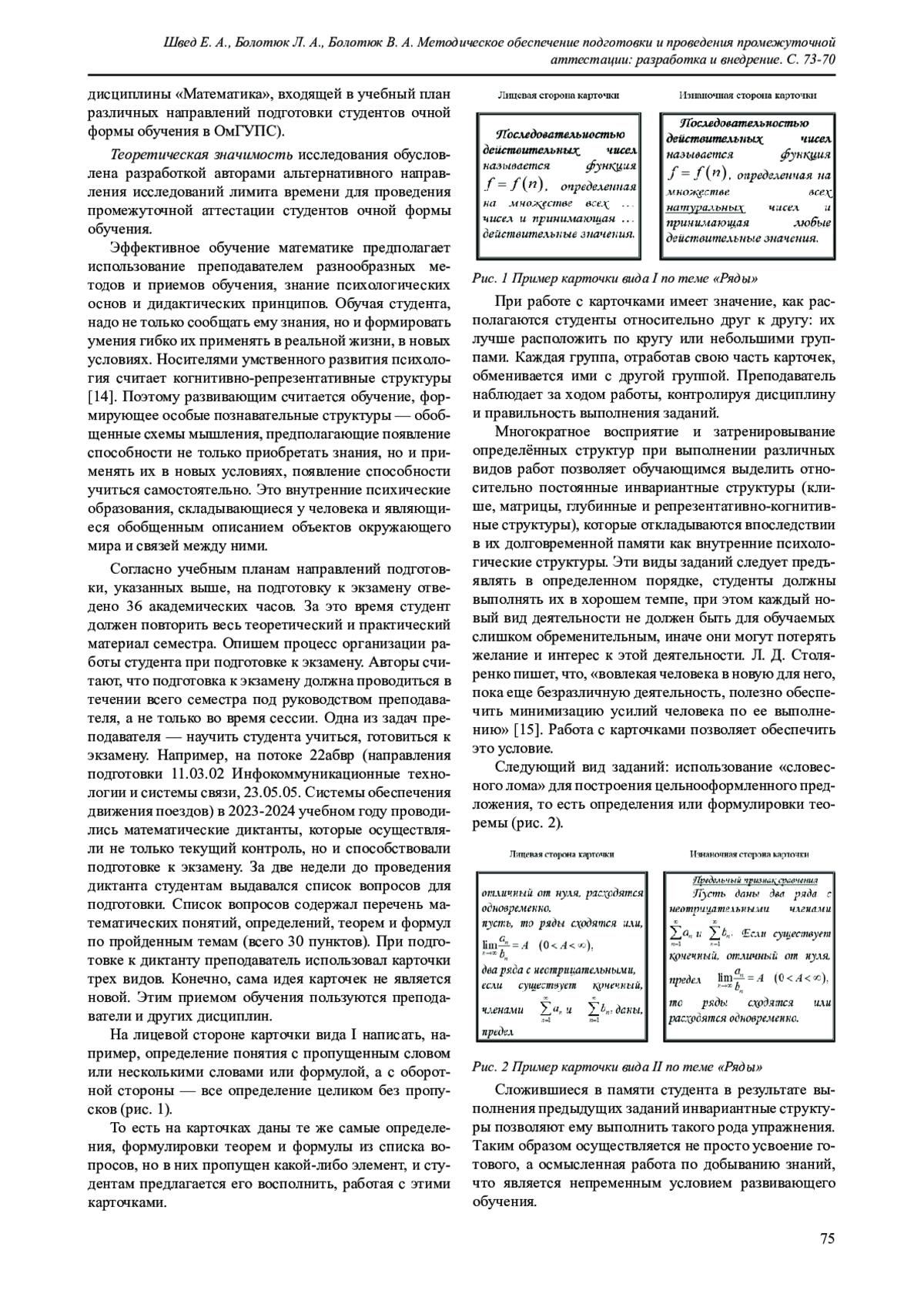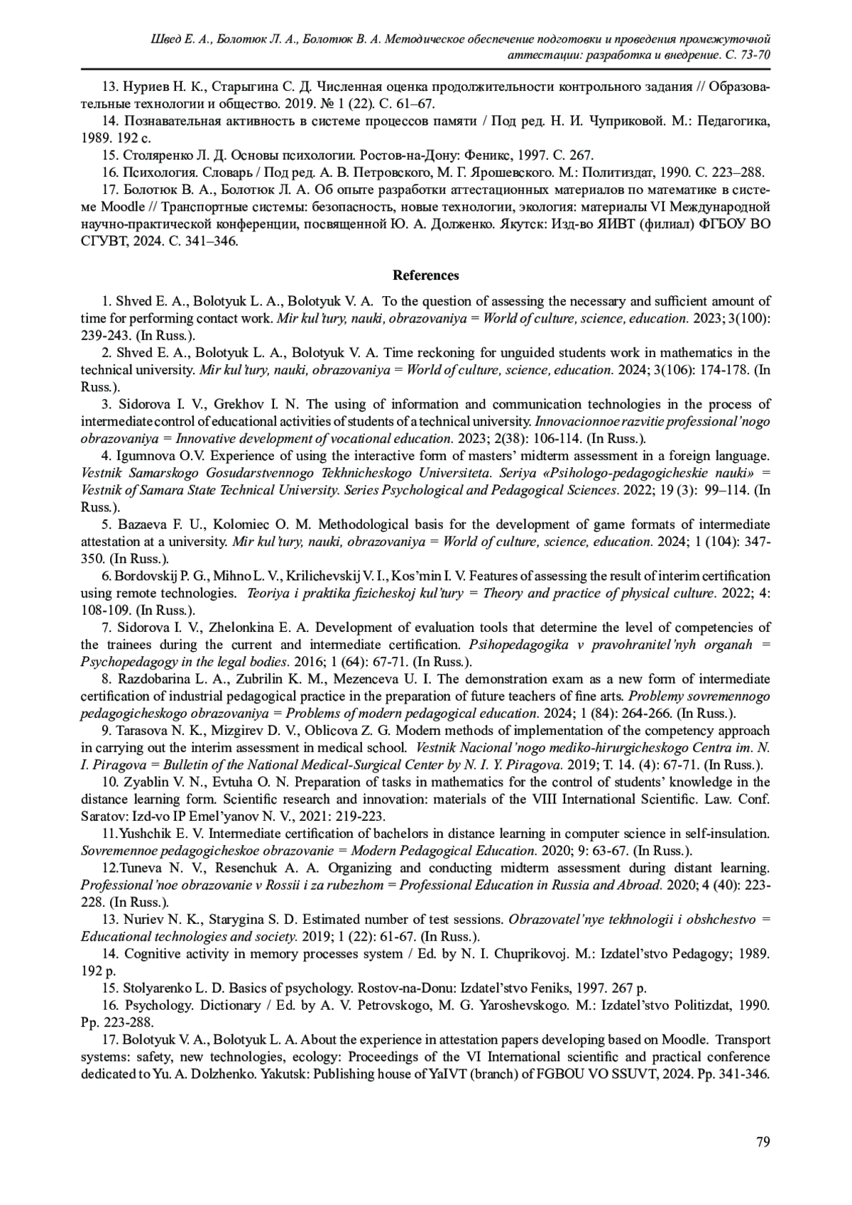 2. Швед Е. А., Болотюк Л. А., Болотюк В. А. О нормировании времени на самостоятельную работу студентов по математике в техническом университете. Мир культуры, науки, образования. 2024. № 3 (106). С. 174-178.