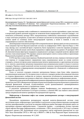 3. Буторина О.В. (2015). Как США обеспечили победу доллара в Бреттон-Вудсе // Вопросы экономики, 2015; (8):58-72. [Butorina O. Dollar’s triumph in Bretton Woods: how was it done? Voprosy Ekonomiki. 2015; №8. с. 58-72. (In Russian)]. DOI: 10.32609/0042-8736-2015-8-58-72 EDN: UDDKZN