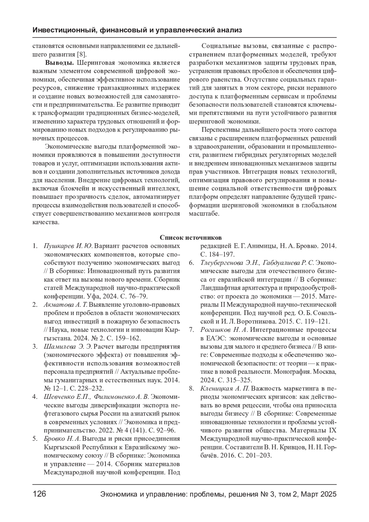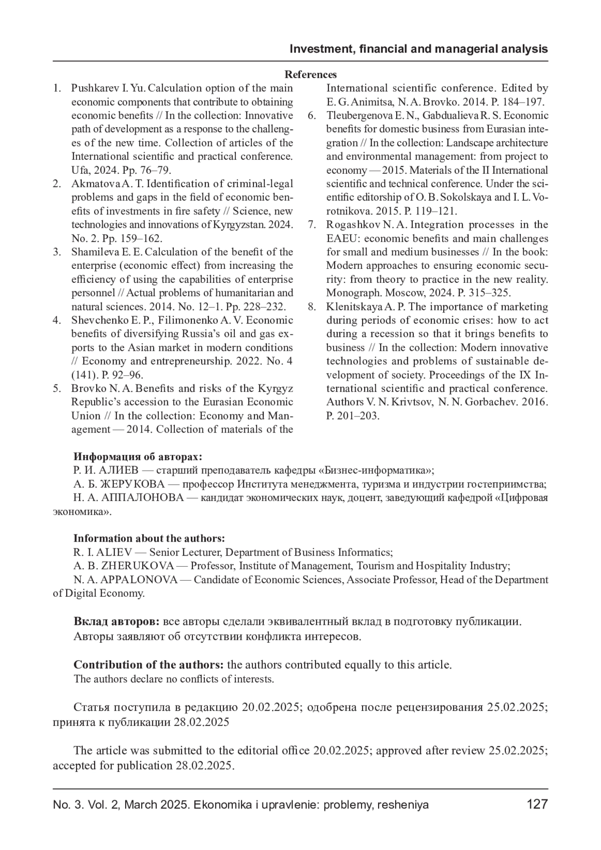 7. Рогашков Н. А. Интеграционные процессы в ЕАЭС: экономические выгоды и основные вызовы для малого и среднего бизнеса // В книге: Современные подходы к обеспечению экономической безопасности: от теории - к практике в новой реальности. Монография. Москва, 2024. С. 315-325. EDN: ALYULQ