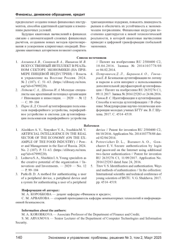 5. Титов В. С. Идентификация и аутентификация. Способы и методы аутентификации // В сборнике: Международная научно-техническая конференция молодых ученых БГТУ им. В. Г. Шухова. 2017. С. 4514-4519. EDN: XQQHDF