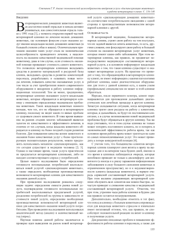 В данной статье обосновывается готовность потребителей и ветеринарных клиник к выведению на рынок новой услуги «диспансеризация животных», с учетом необходимости применения информационных технологий, что в конечном итоге скажется на повышении качества оказываемых ветеринарных услуг и улучшению качества жизни мелких домашних животных и животных компаньонов. Существующая практика работы ветеринарных клиник направлена в большей степени на работу с больными животными, количество которых значительно меньше всего поголовья, содержащихся в домохозяйствах животных. Программа диспансеризации животных направлена на новый сегмент потребителей ветеринарных услуг, владельцев здоровых животных. Целью данного исследования было определение готовности потенциальных потребителей воспользоваться новой услугой «диспансеризация животных», а также определить необходимые производственные возможности ветеринарных клиник для качественного оказания данной услуги. В результате проведенного исследования определена потенциальная емкость рынка и готовность потребителей к приобретению новой услуги «диспансеризации животных». Выделено, что одним из основных инструментов для качественного оказания новой услуги являются информационные технологии. Материалы, изложенные в данной статье, могут быть полезны при разработке программ диспансеризации животных на уровне конкретных ветеринарных клиник.