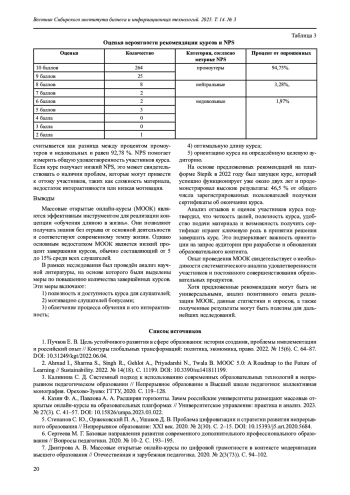 18. Padilla Rodriguez B. C., Armellini A., Rodriguez Nieto M. C. Learner engagement, retention and success: why size matters in massive open online courses (MOOCs) // Open Learning: The Journal of Open, Distance and e-Learning. 2020. № 35(1). С. 46-62. https://doi.org/10.1080/02680513.2019.1665503.