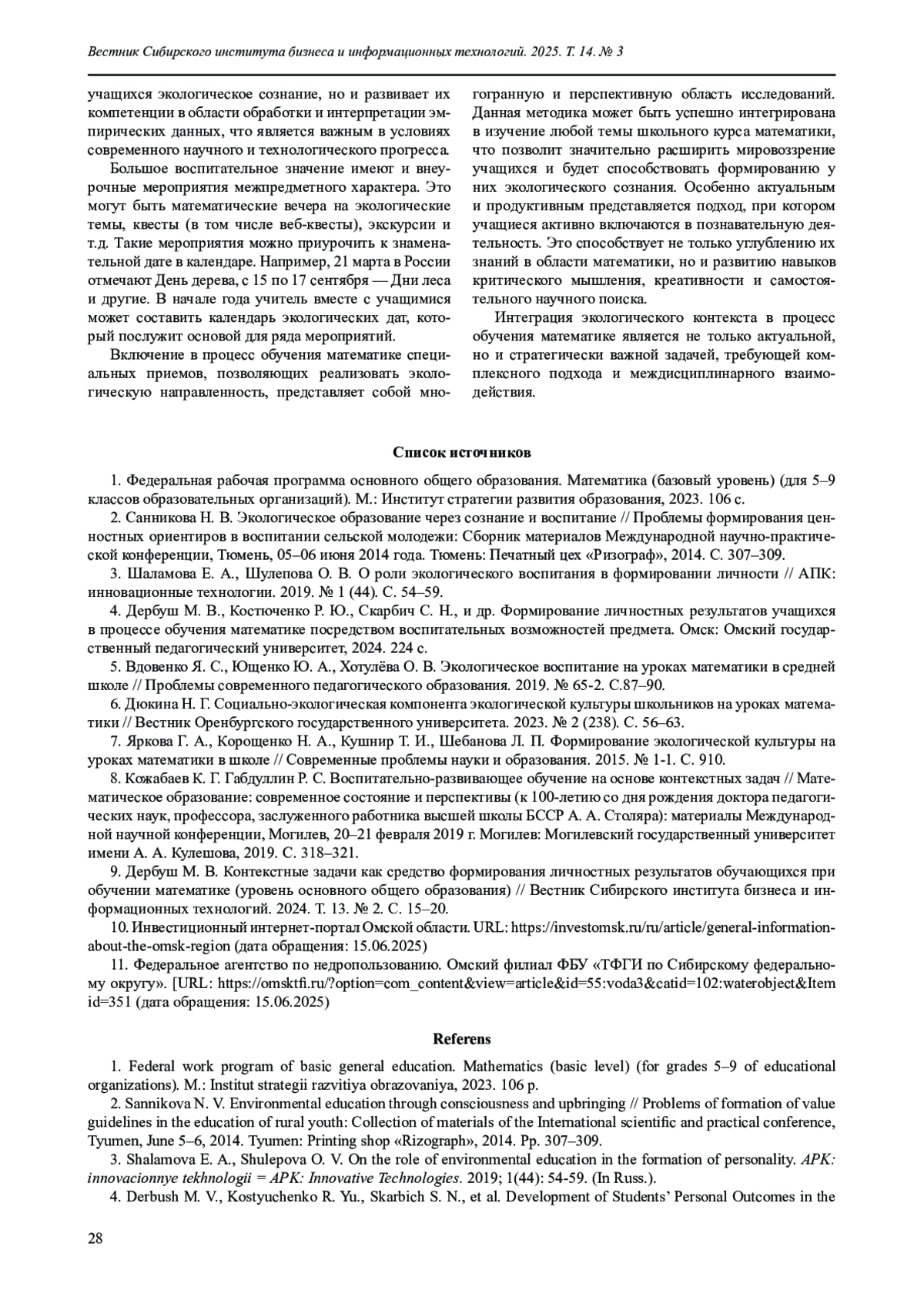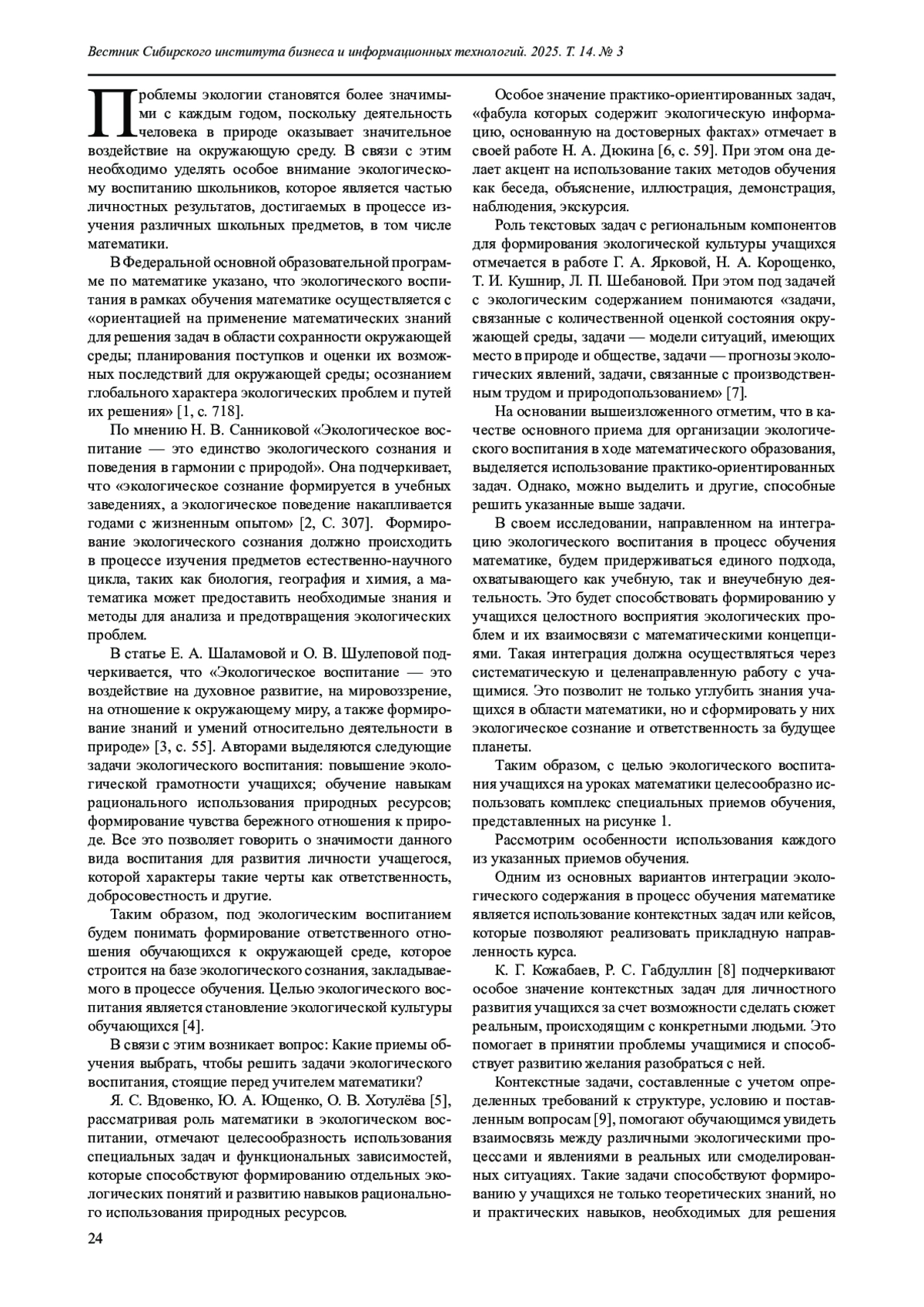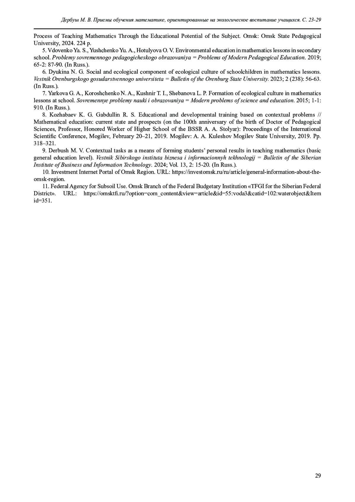 9. Дербуш М. В. Контекстные задачи как средство формирования личностных результатов обучающихся при обучении математике (уровень основного общего образования) // Вестник Сибирского института бизнеса и информационных технологий. 2024. Т. 13. № 2. С. 15-20.