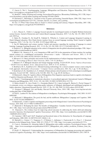 10. Bialystok E., Barac R. Cognitive effects of bilingualism: How linguistic experience leads to cognitive development. Cognitive Education and Research. 2013. 12. Pp. 13-23. URL: https://pmc.ncbi.nlm.nih.gov/articles/PMC3583091/pdf/cer-12-13.pdf