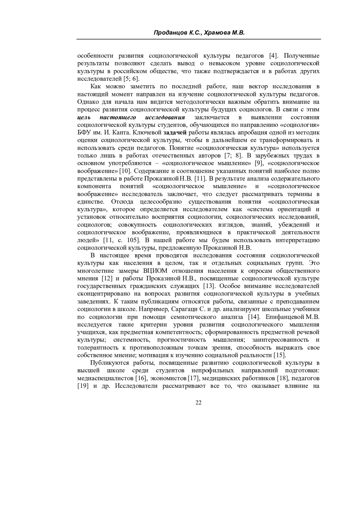 11. Проказина Н.В. “Социологическая культура”. К вопросу о содержании и интерпретации понятия / Н.В. Проказина // Социологические исследования. - 2011. - № 3. - С. 103-107. EDN: NEKWLJ