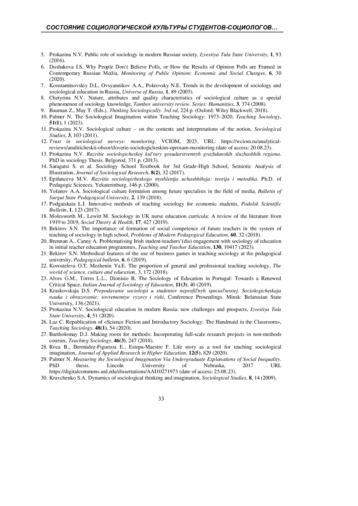 29. Palmer N. Measuring the Sociological Imagination Via Undergraduate Explanations of Social Inequality: PhD thesis / N. Palmer. - Lincoln, 2017. - URL: https://digitalcommons.unl.edu/dissertations/AAI10271973 (дата обращения: 25.08.23).