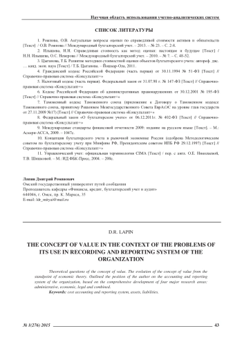 Стоимость как одно из центральных понятий, используемых в экономике, является важнейшей характеристикой экономических процессов. Вопросы бухгалтерской оценки стоимости активов и обязательств, выявление тенденций в данной области и факторы, их обусловившие, рассматривались в работах: О. В. Рожновой [1], Н. Н. Илышева, О. С. Неверовой [2], Т. Б. Цыгановой [3] и др