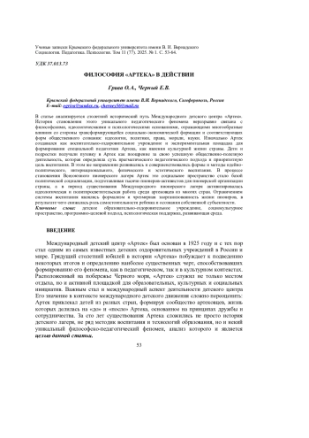 ГРИВА О. А., ЧЁРНЫЙ Е. В. ФИЛОСОФИЯ «АРТЕКА» В ДЕЙСТВИИ // УЧЕНЫЕ ЗАПИСКИ КРЫМСКОГО ФЕДЕРАЛЬНОГО УНИВЕРСИТЕТА ИМЕНИ В. И. ВЕРНАДСКОГО. СОЦИОЛОГИЯ. ПЕДАГОГИКА. ПСИХОЛОГИЯ. 2025. ТОМ 11 (77). № 1