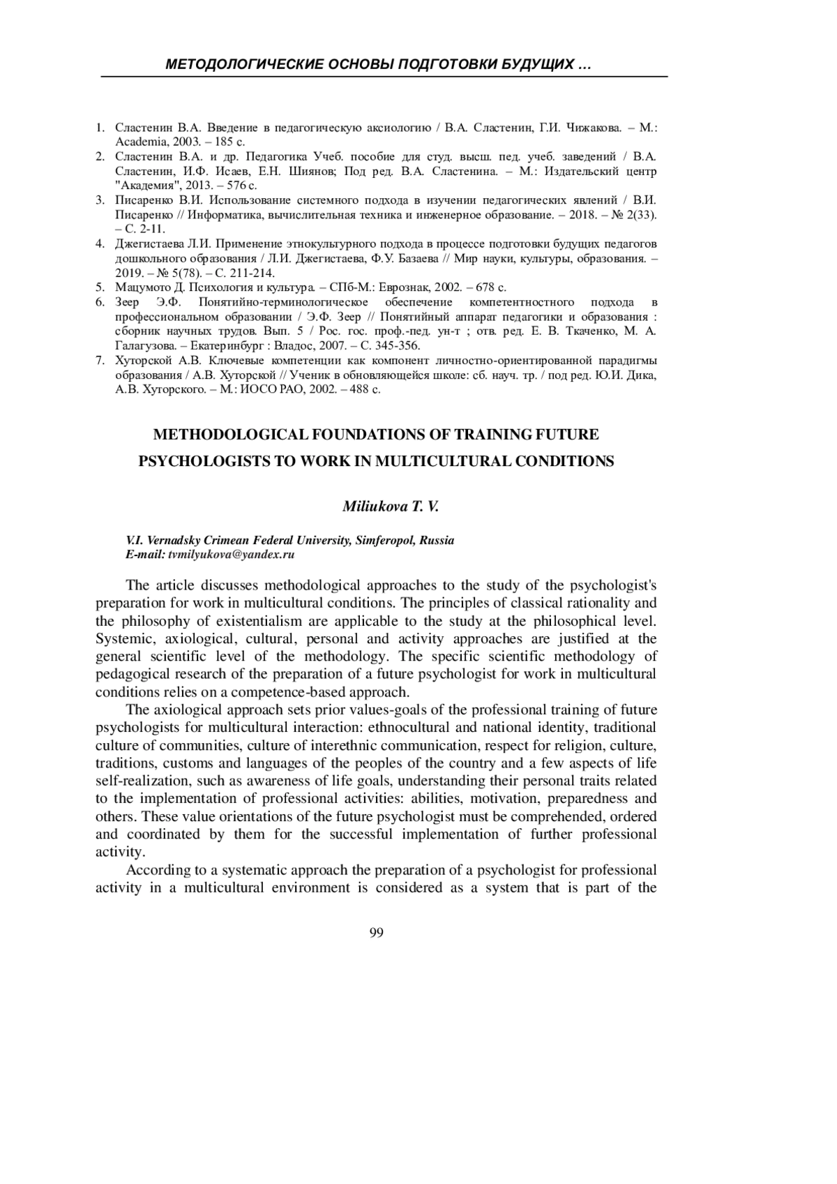 1. Сластенин В.А. Введение в педагогическую аксиологию / В.А. Сластенин, Г.И. Чижакова. - М.: Academia, 2003. - 185 с. EDN: RYWBXR