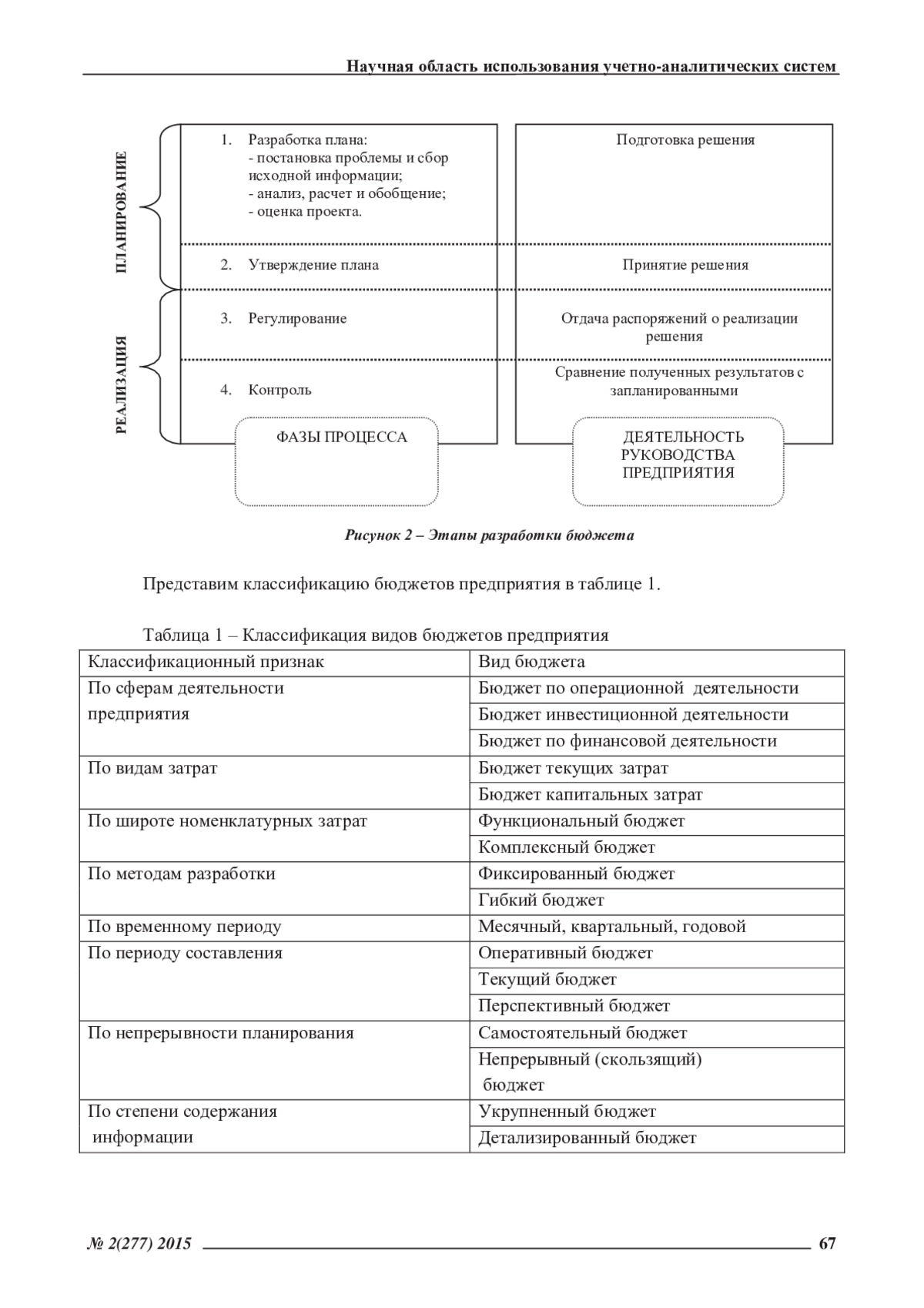Ключевые фразы: планирование, контроль, затраты на производство, бюджетирование