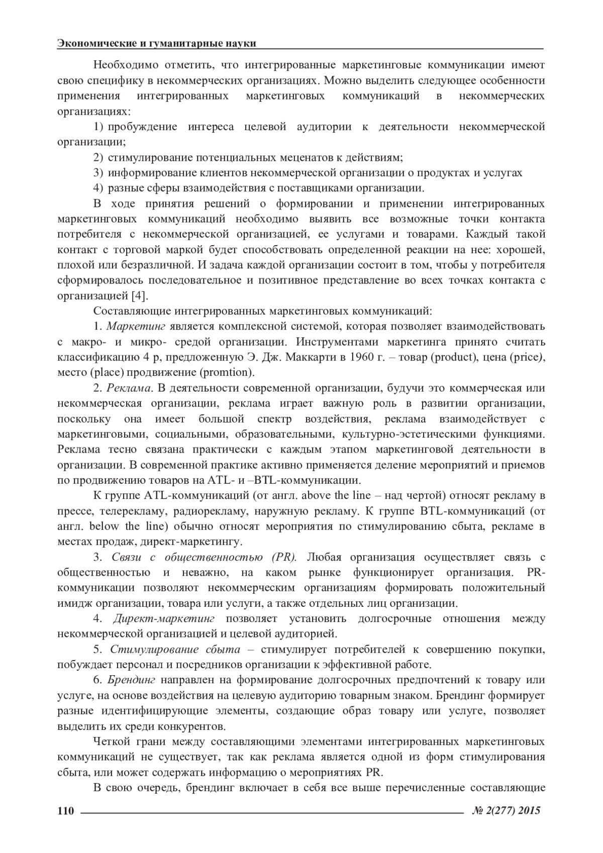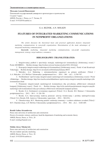 В статье рассматриваются теоретические основы и особенности практического применения интегрированных маркетинговых коммуникаций в некоммерческих организациях. Определенны основные преимущества интегрированных маркетинговых коммуникаций