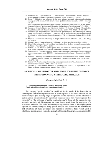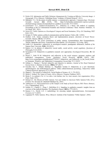20. Савинская О.Б. Субъективность в качественном исследовании: новые подходы / О.Б. Савинская // Социологические исследования. - 2007. - № 10. - C. 122-131. EDN: IJAHSR