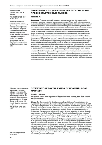 13. Киварина М. В. Региональная цифровая платформа АПК: оценка эффективности // Аграрный вестник Урала. 2024. Т. 24. № 2. С. 286-296.