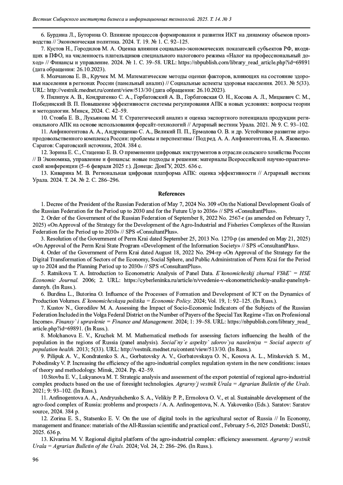 12. Зорина Е. С., Стаценко Е. В. О применении цифровых инструментов в отрасли сельского хозяйства России // В Экономика, управление и финансы: новые подходы и решения: материалы Всероссийской научно-практической конференции (5-6 февраля 2025 г.). Донецк: ДонГУ, 2025. 636 с.
