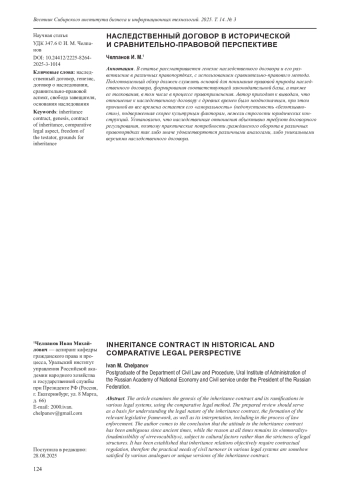 В статье рассматривается генезис наследственного договора и его разветвление в различных правопорядках, с использованием сравнительно-правового метода. Подготовленный обзор должен служить основой для понимания правовой природы наследственного договора, формирования соответствующей законодательной базы, а также ее толкования, в том числе в процессе правоприменения. Автор приходит к выводам, что отношение к наследственному договору с древних времен было неоднозначным, при этом причиной во все времена остается его «аморальность» (недопустимость «безотзывности»), подверженная скорее культурным факторам, нежели строгости юридических конструкций. Установлено, что наследственные отношения объективно требуют договорного регулирования, поэтому практические потребности гражданского оборота в различных правопорядках так либо иначе удовлетворяются различными аналогами, либо уникальными версиями наследственного договора.
