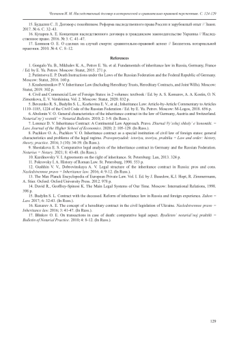 17. Блинков О. Е. О сделках на случай смерти: сравнительно-правовой аспект // Бюллетень нотариальной практики. 2010. № 4. С. 8-12.