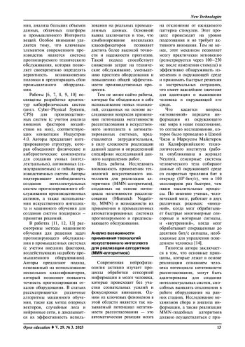 Постановка проблемы. Одна из актуальных проблем промышленной автоматизации заключается в том, что работа немногих имеющихся на Российском рынке систем прогнозируемого обслуживания, как правило, основывается на сборе и анализе данных оборудования без учета совместного воздействия внутренних и внешних факторов. В текущих экономических условиях необходим обоснованный выбор и применение новых технологий искусственного интеллекта для исследования и реализации базовых принципов потенциала негативности рассогласования, которые откроют новые горизонты для повышения эффективности и надежности промышленных автоматизированных систем прогнозируемого или предписывающего обслуживания многостадийных технологических процессов. Моделирование автоматических реакций на изменения окружающей среды и прогнозирование отказов позволит создать адаптивные системы, которые существенно снизят риски возникновения сбоев и аварий, а также будут способствовать оптимизации производственных ресурсов и снижению эксплуатационных затрат.