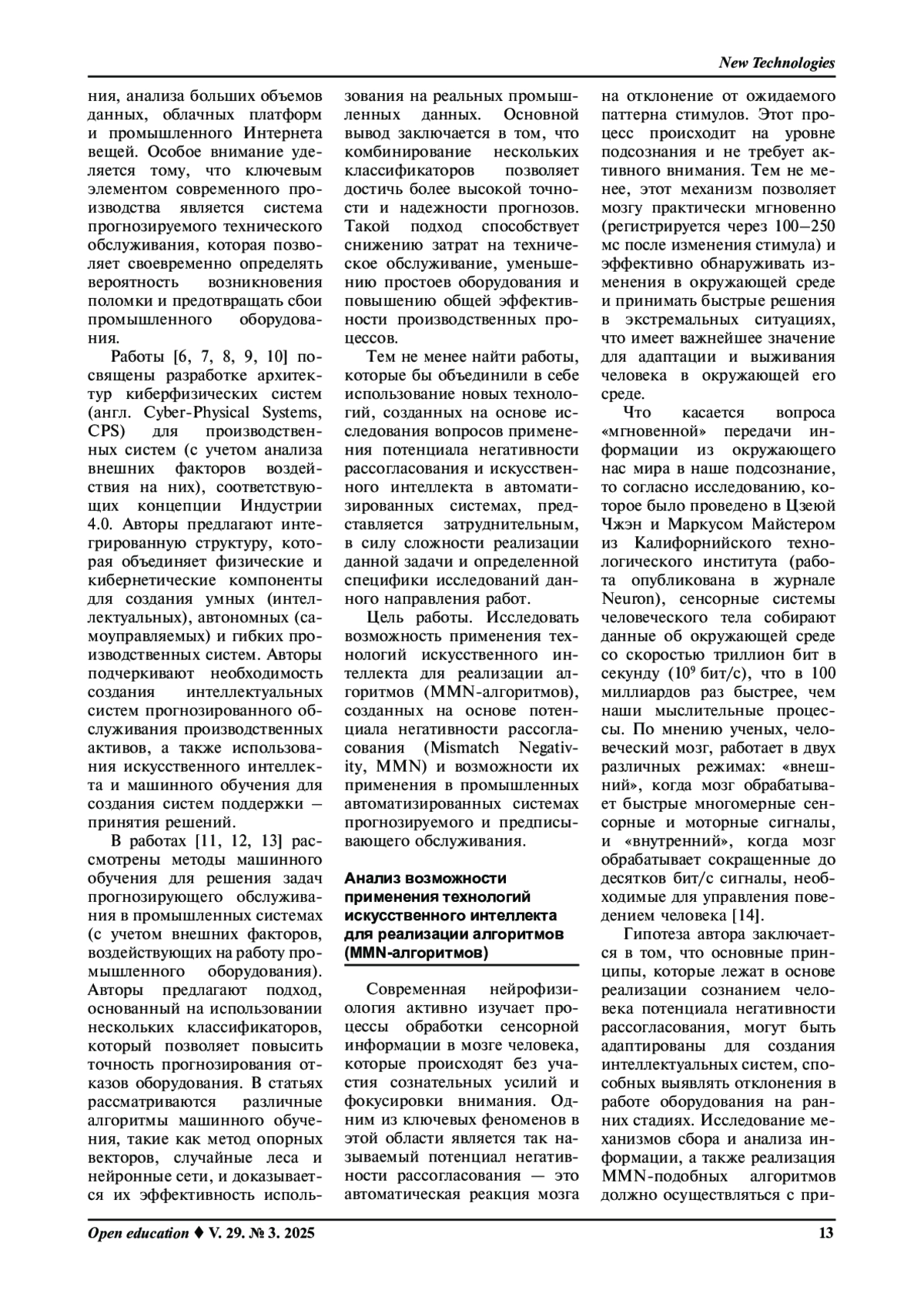 Цель. Исследовать возможность применения технологий искусственного интеллекта для реализации алгоритмов, созданных на основе потенциала негативности рассогласования (англ. mismatch negativity, MMN) и возможности их применения в промышленных автоматизированных системах прогнозируемого или предписывающего обслуживания, а также разработать базовый MMN-алгоритм и реализовать его на языке программирования Python.