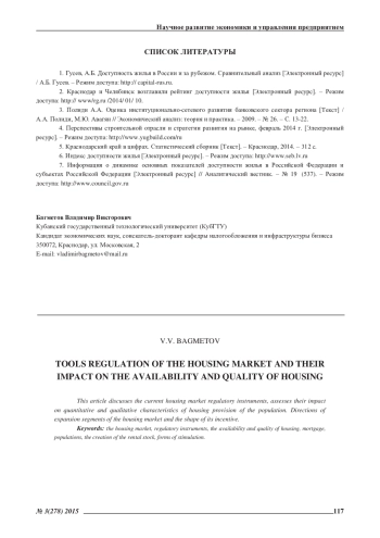 7. Информация о динамике основных показателей доступности жилья в Российской Федерации и субъектах Российской Федерации [Электронный ресурс] // Аналитический вестник. - № 19 (537). - Режим доступа: http://www.council.gov.ru.