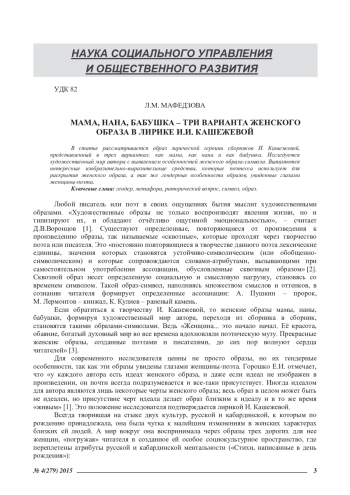 Статья: МАМА, НАНА, БАБУШКА - ТРИ ВАРИАНТА ЖЕНСКОГО ОБРАЗА В ЛИРИКЕ И. И. КАШЕЖЕВОЙ (2015)