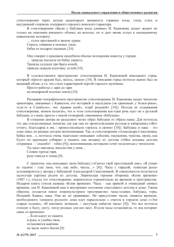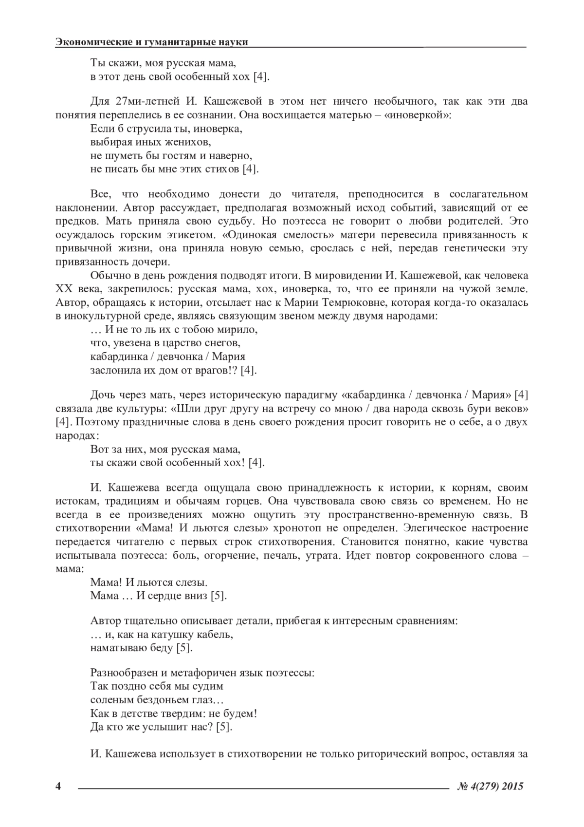 МАФЕДЗОВА Л. М. МАМА, НАНА, БАБУШКА - ТРИ ВАРИАНТА ЖЕНСКОГО ОБРАЗА В ЛИРИКЕ И. И. КАШЕЖЕВОЙ // ЭКОНОМИЧЕСКИЕ И ГУМАНИТАРНЫЕ НАУКИ. 2015. № 4 (279)