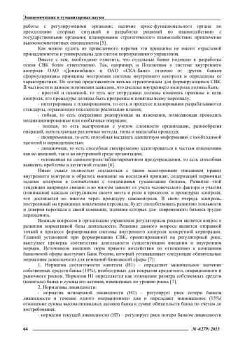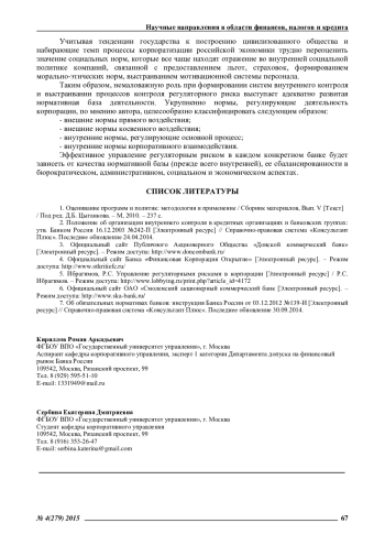 Статья: РАЗВИТИЕ НОРМАТИВНОЙ БАЗЫ ДЕЯТЕЛЬНОСТИ КОРПОРАЦИЙ КАК ОСНОВЫ УПРАВЛЕНИЯ РЕГУЛЯТОРНЫМ РИСКОМ(НА ПРИМЕРЕ КОМПАНИЙ БАНКОВСКОЙ СФЕРЫ) (2015)