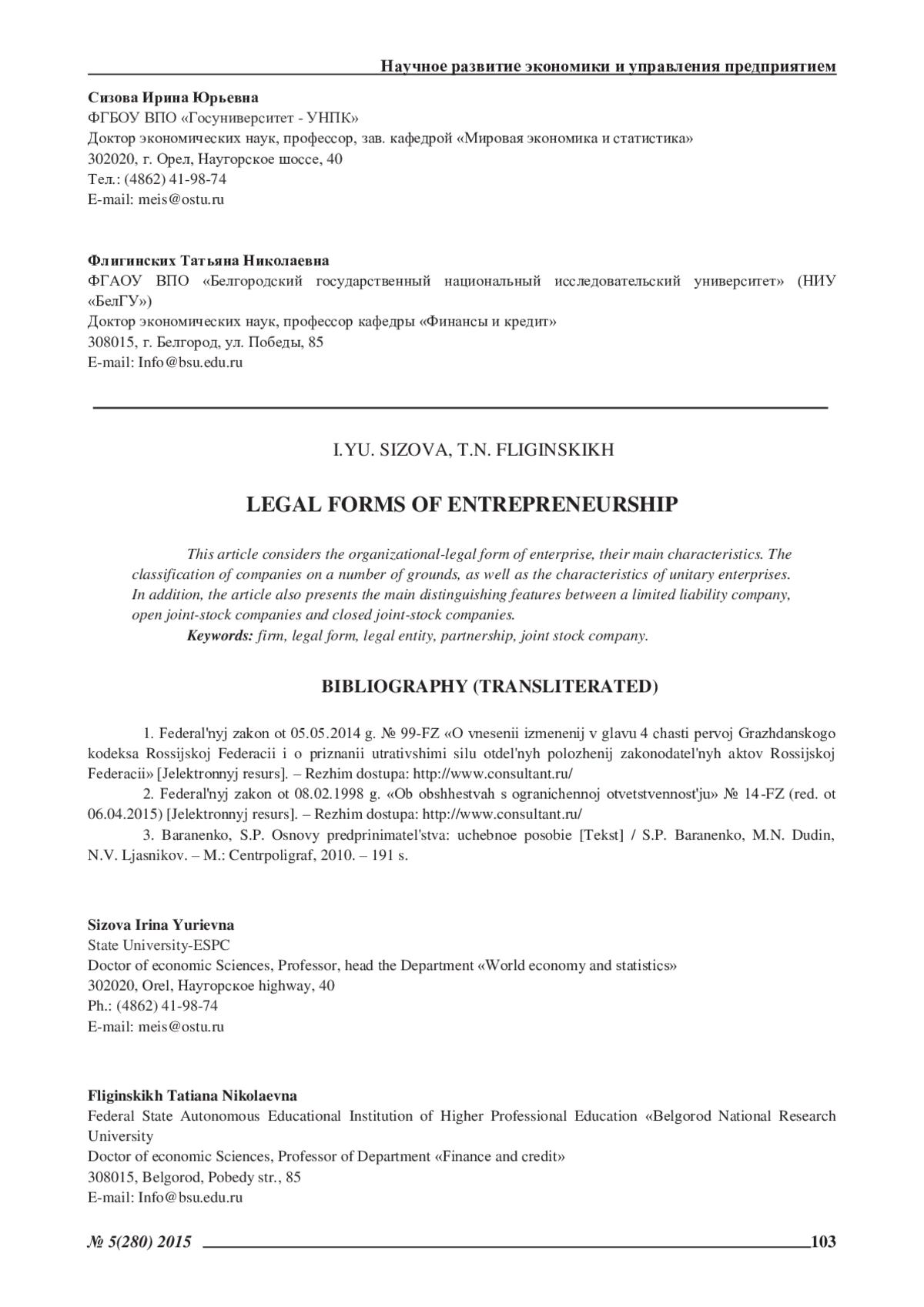 В статье рассмотрены организационно-правовые формы предпринимательства, их основные характеристики. Проведена классификация компаний по ряду признаков, а также представлена характеристика унитарных предприятий. Кроме того, в статье также представлены основные отличительные особенности между обществами с ограниченной ответственностью, открытыми акционерными обществами и закрытыми акционерными обществами