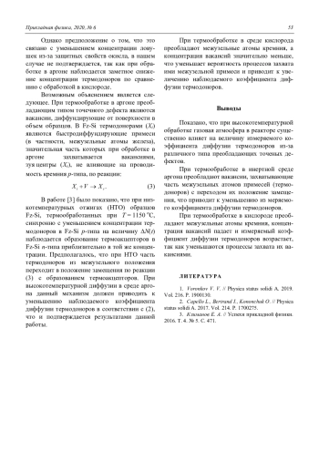 Статья: Влияние газовой среды на диффузию термодоноров в кремнии (2020)