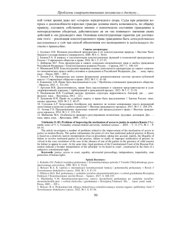 ВОЛЧЕНКО О. Ю. ПРОБЛЕМЫ СОВЕРШЕНСТВОВАНИЯ МЕХАНИЗМА ДОСТУПА К ПРАВОСУДИЮ В СОВРЕМЕННОЙ РОССИИ // УЧЕНЫЕ ЗАПИСКИ КРЫМСКОГО ФЕДЕРАЛЬНОГО УНИВЕРСИТЕТА ИМЕНИ В. И. ВЕРНАДСКОГО. ЮРИДИЧЕСКИЕ НАУКИ. 2025. ТОМ 11(77). №1