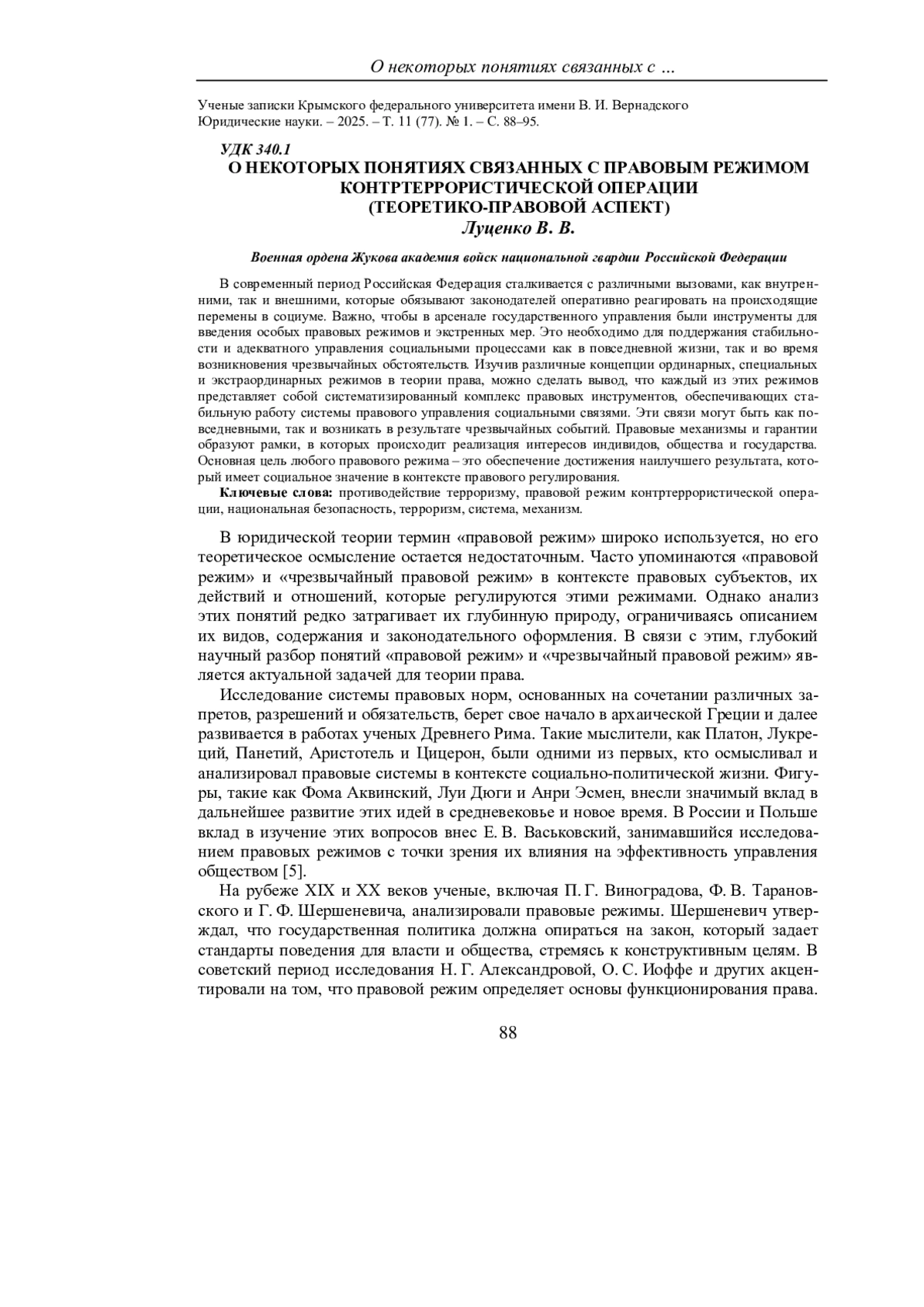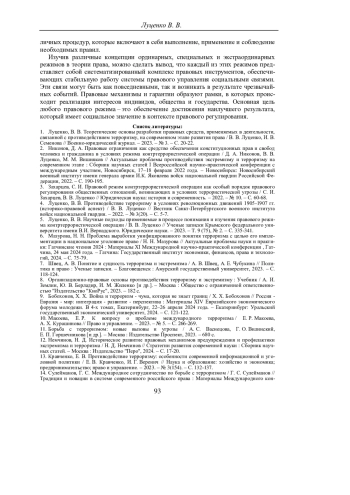 5. Луценко, В. В. Научные подходы применяемые в процессе понимания и изучения правового режима контртеррористической операции / В. В. Луценко // Ученые записки Крымского федерального университета имени В.И. Вернадского. Юридические науки. - 2023. - Т. 9 (75), № 2. - С. 335-341. EDN: FRLTAI