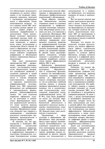 Заключение подчеркивает, что полученные результаты создают теоретико-методологическую основу для разработки комплексной модели оценки эффективности ЭБС, требующей дальнейшей верификации и углубленного изучения взаимосвязей между использованием электронных ресурсов, академической успеваемостью студентов и формированием профессиональных компетенций.
