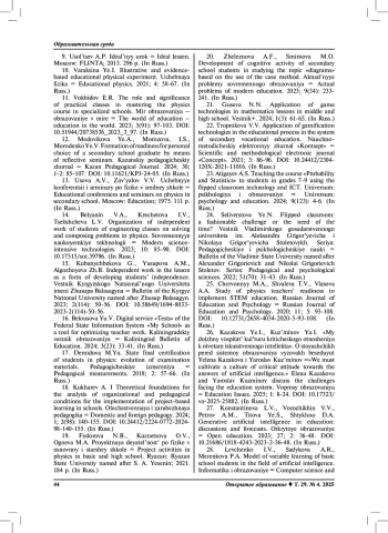 Заключение. Использование средств вычислительной техники и ее программного обеспечения в общем образовании постоянно меняет направление вектора своего развития. От восторженных ожиданий до законодательного запрета использования «…средств подвижной радиотелефонной связи во время проведения учебных занятий при освоении образовательных программ начального общего, основного общего и среднего общего образования…» [1]. Надеемся, что к средствам вычислительной техники это относится лишь в части их использования в режиме «подвижной радиотелефонной связи». На все же остальные случаи, включая работу с системами искусственного интеллекта, запрет не распространяется. Именно здесь и следует ожидать наибольших успехов.