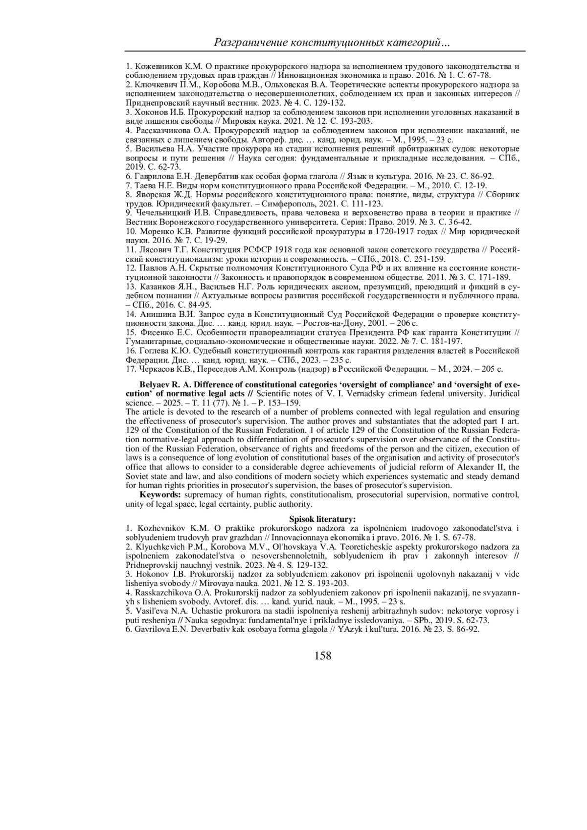 2. Ключкевич П.М., Коробова М.В., Ольховская В.А. Теоретические аспекты прокурорского надзора за исполнением законодательства о несовершеннолетних, соблюдением их прав и законных интересов // Приднепровский научный вестник. 2023. № 4. С. 129-132.