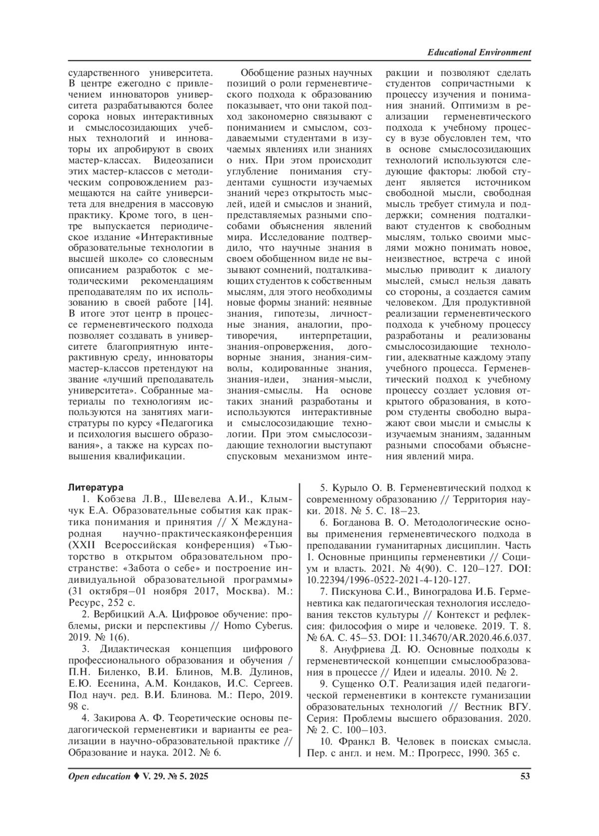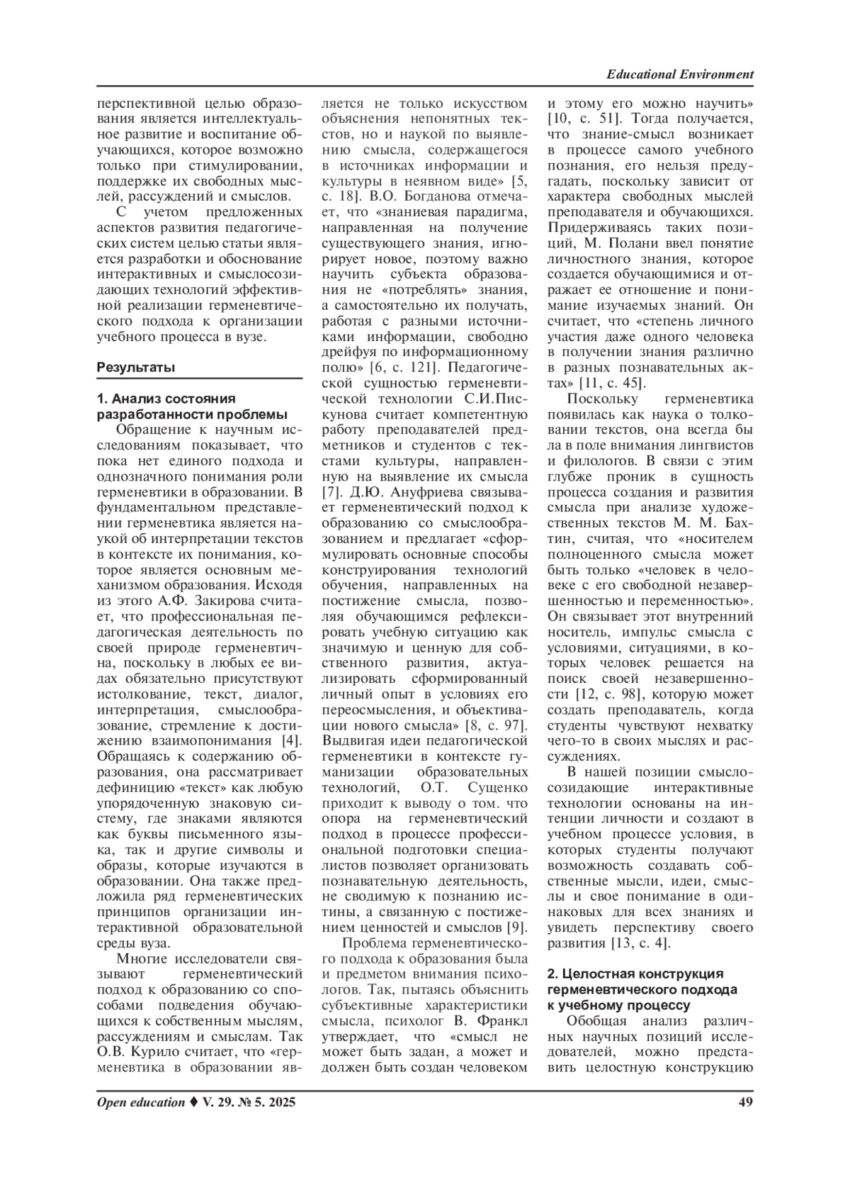 Статья: Технологии реализации герменевтического подхода к учебному процессу в вузе (2025)