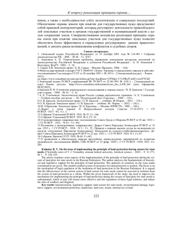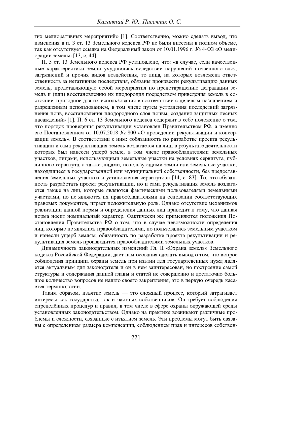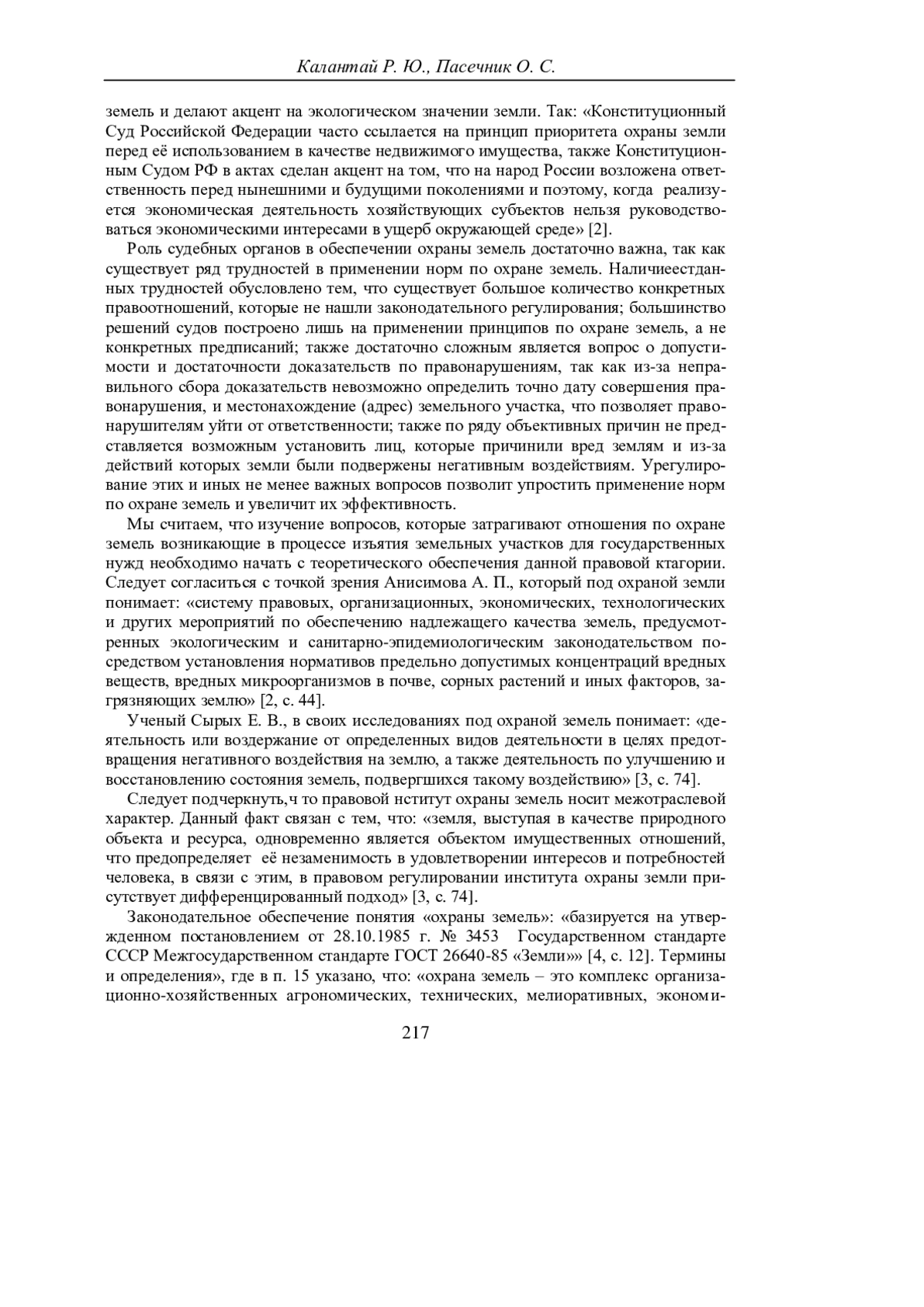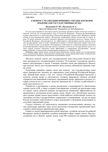 КАЛАНТАЙ Р. Ю., ПАСЕЧНИК О. С. К ВОПРОСУ РЕАЛИЗАЦИИ ПРИНЦИПА ОХРАНЫ ЗЕМЛИ ПРИ ИЗЪЯТИИ ДЛЯ ГОСУДАРСТВЕННЫХ НУЖД // УЧЕНЫЕ ЗАПИСКИ КРЫМСКОГО ФЕДЕРАЛЬНОГО УНИВЕРСИТЕТА ИМЕНИ В. И. ВЕРНАДСКОГО. ЮРИДИЧЕСКИЕ НАУКИ. 2025. ТОМ 11(77). №1