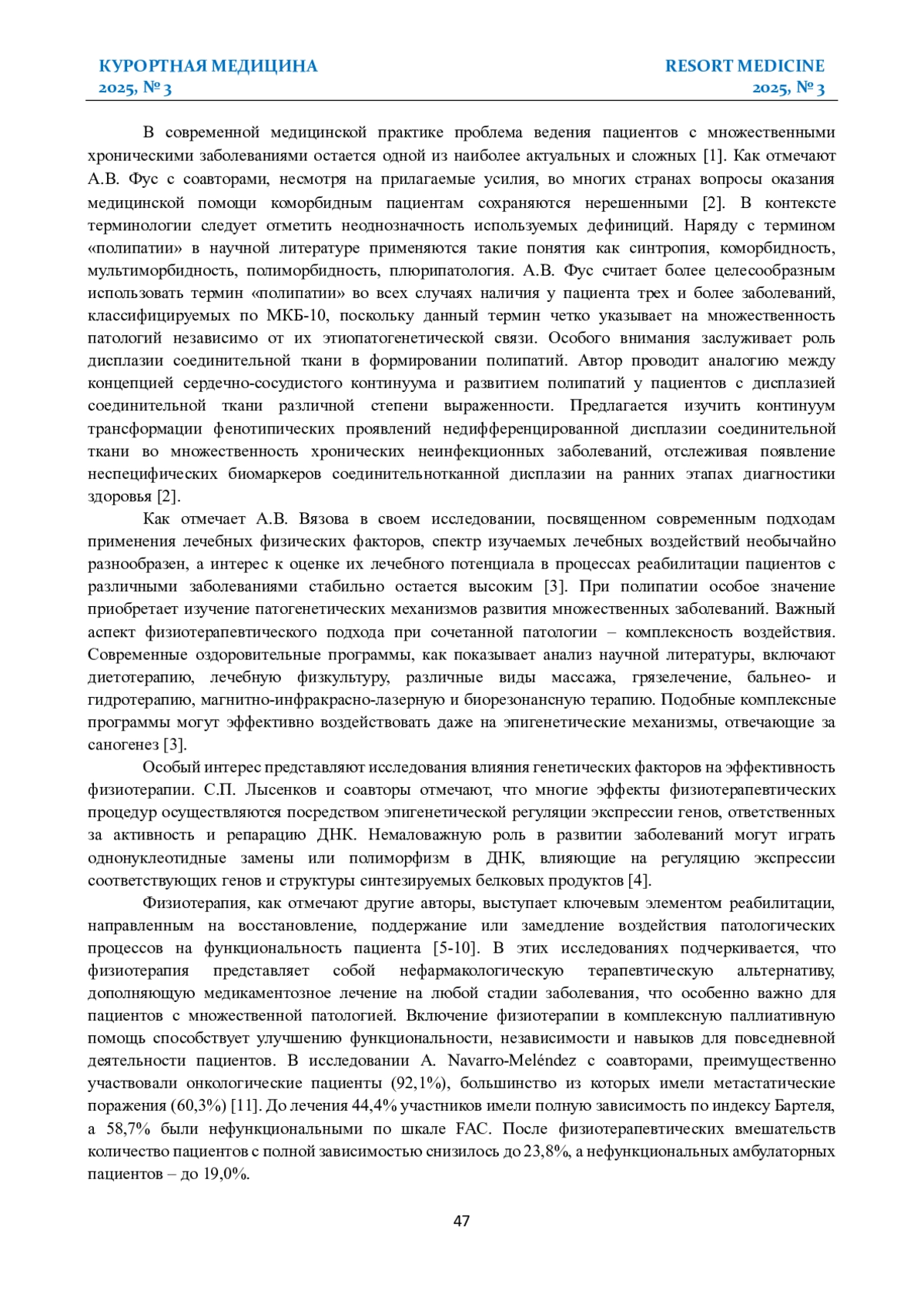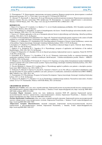 7. Обухова О. А., Карапетян М. У., Тугушева Р. А. Физиотерапия: перспективы применения и ограничения метода. Реабилитология. 2024; 2(4): 369-374. https://www.. DOI: 10.17749/2949-5873/rehabil.2024.35